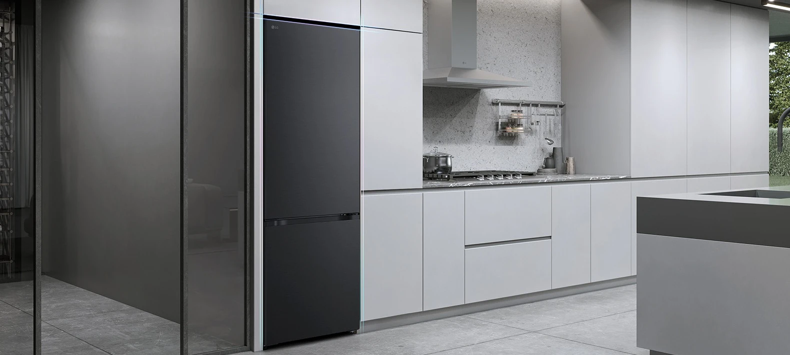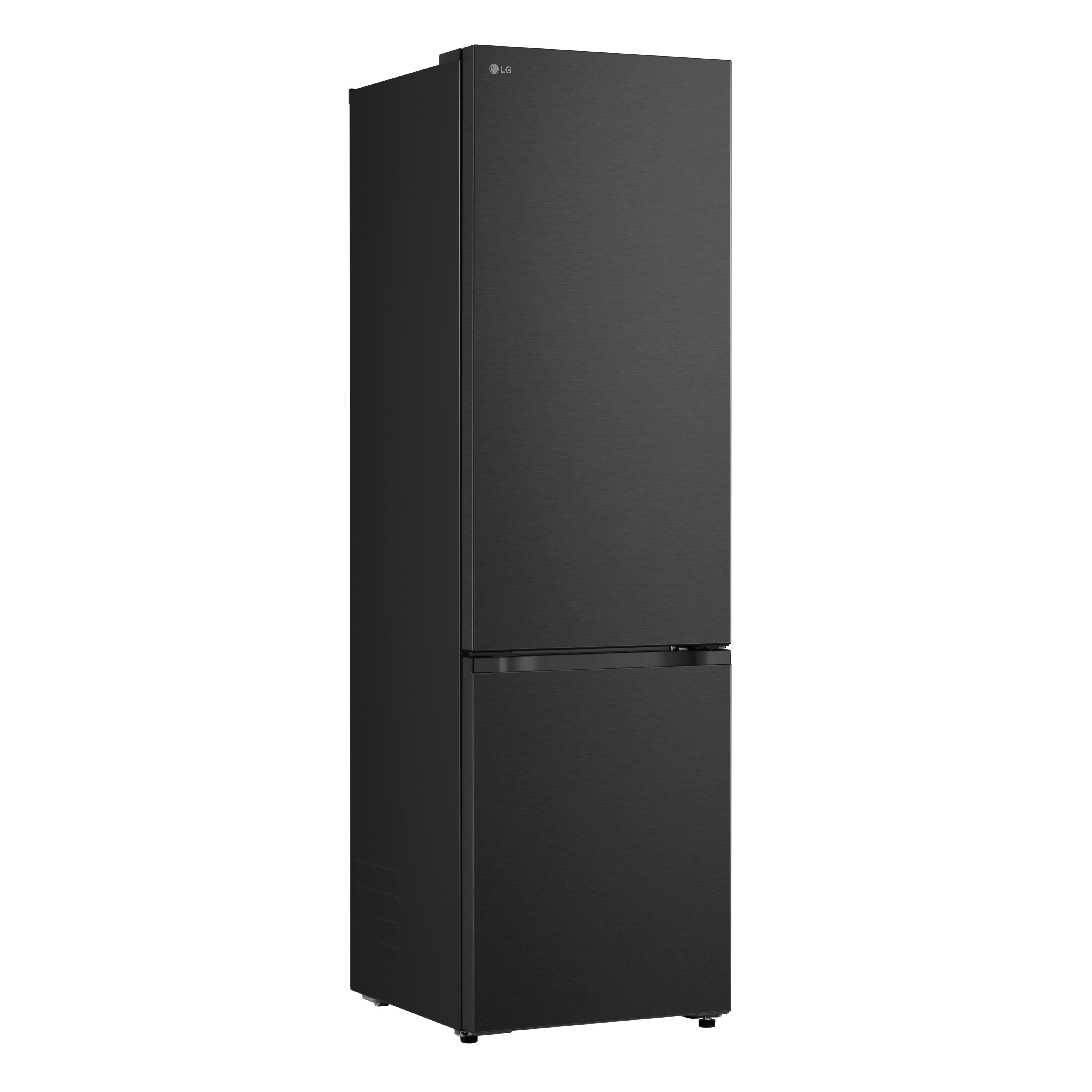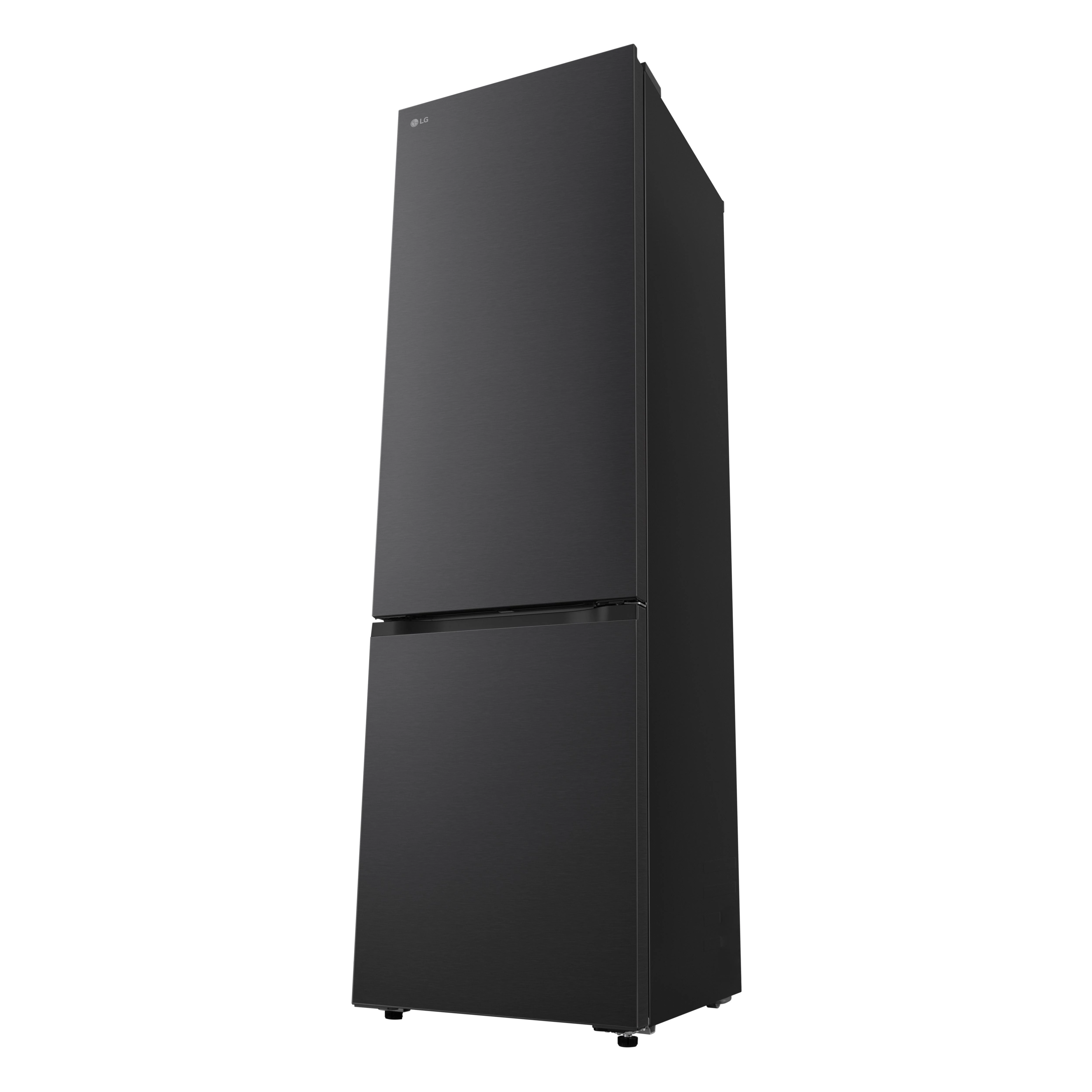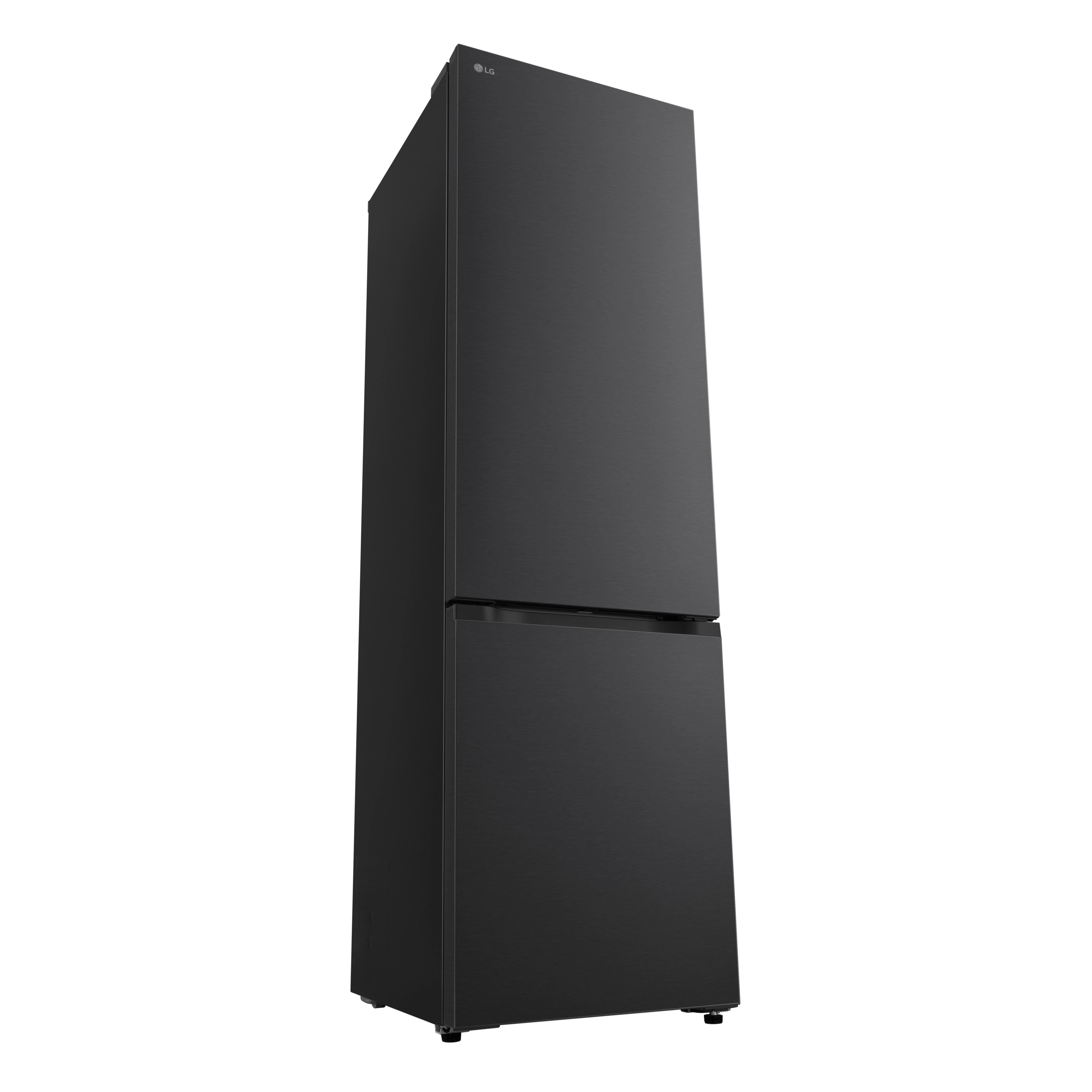 Холодильник LG GC-B509ETSM з нижньою морозильною камерою має корисний об’єм 375 л (262 л холодильне + 113 л морозильне відділення) і належить до енергетичного класу E. Інверторний компресор забезпечує рівень шуму 35 дБ та потужність заморожування 10 кг на добу. Система Total No Frost усуває необхідність розморожування, а Metal Fresh разом із зонами Fresh Converter та Fresh Balancer підтримують оптимальні умови для різних продуктів. Матове чорне покриття корпусу та прихована горизонтальна ручка створюють стриманий сучасний вигляд.