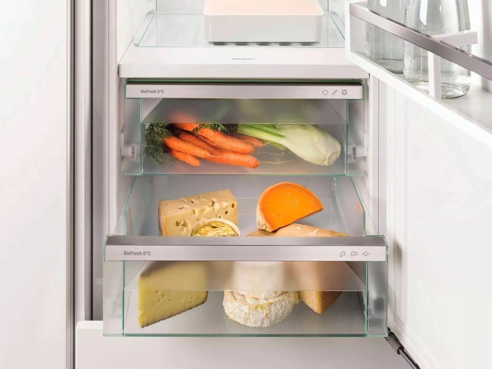 - BioFresh: зоны с температурой около 0°C для оптимального хранения мяса, рыбы, молочных продуктов, фруктов и овощей