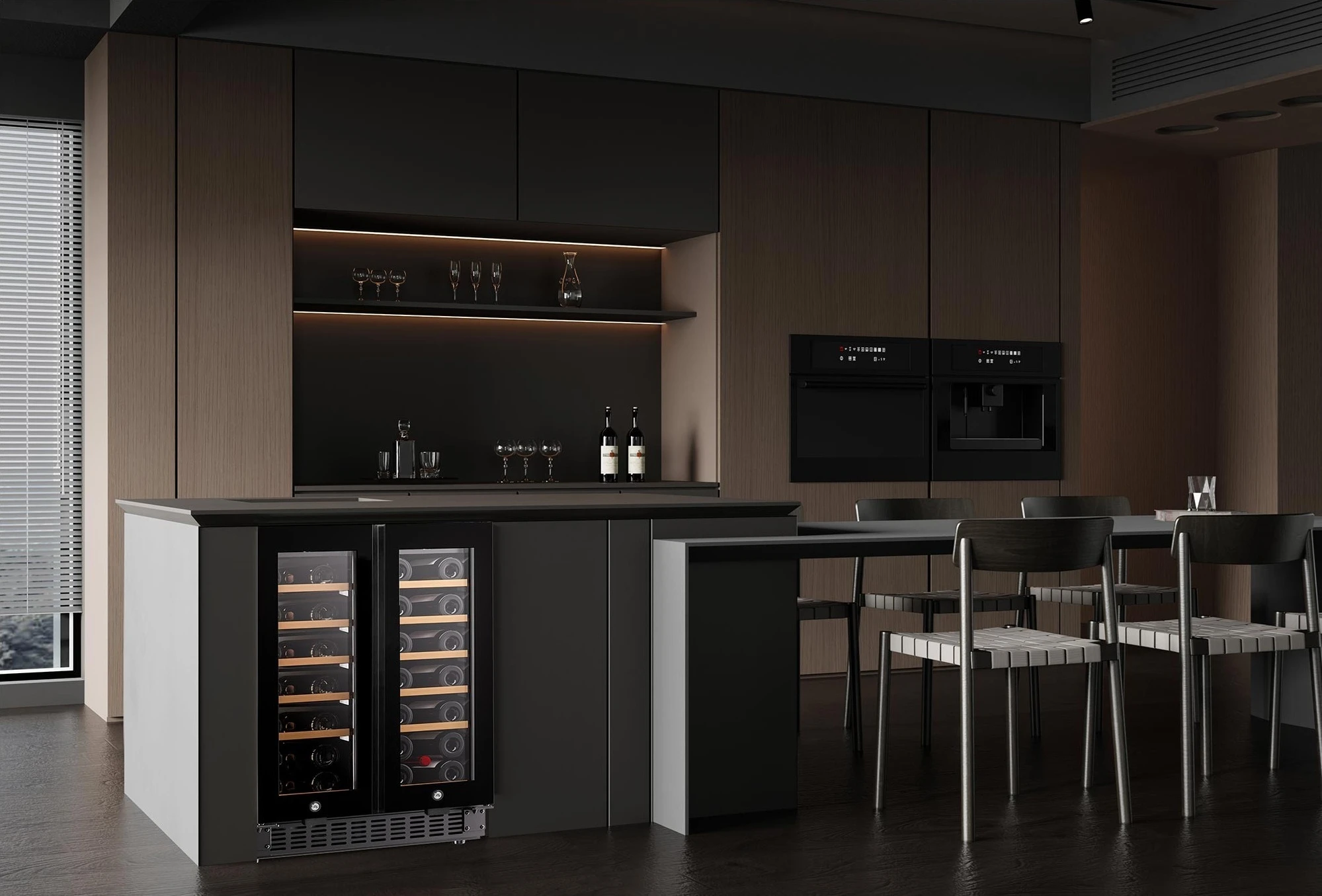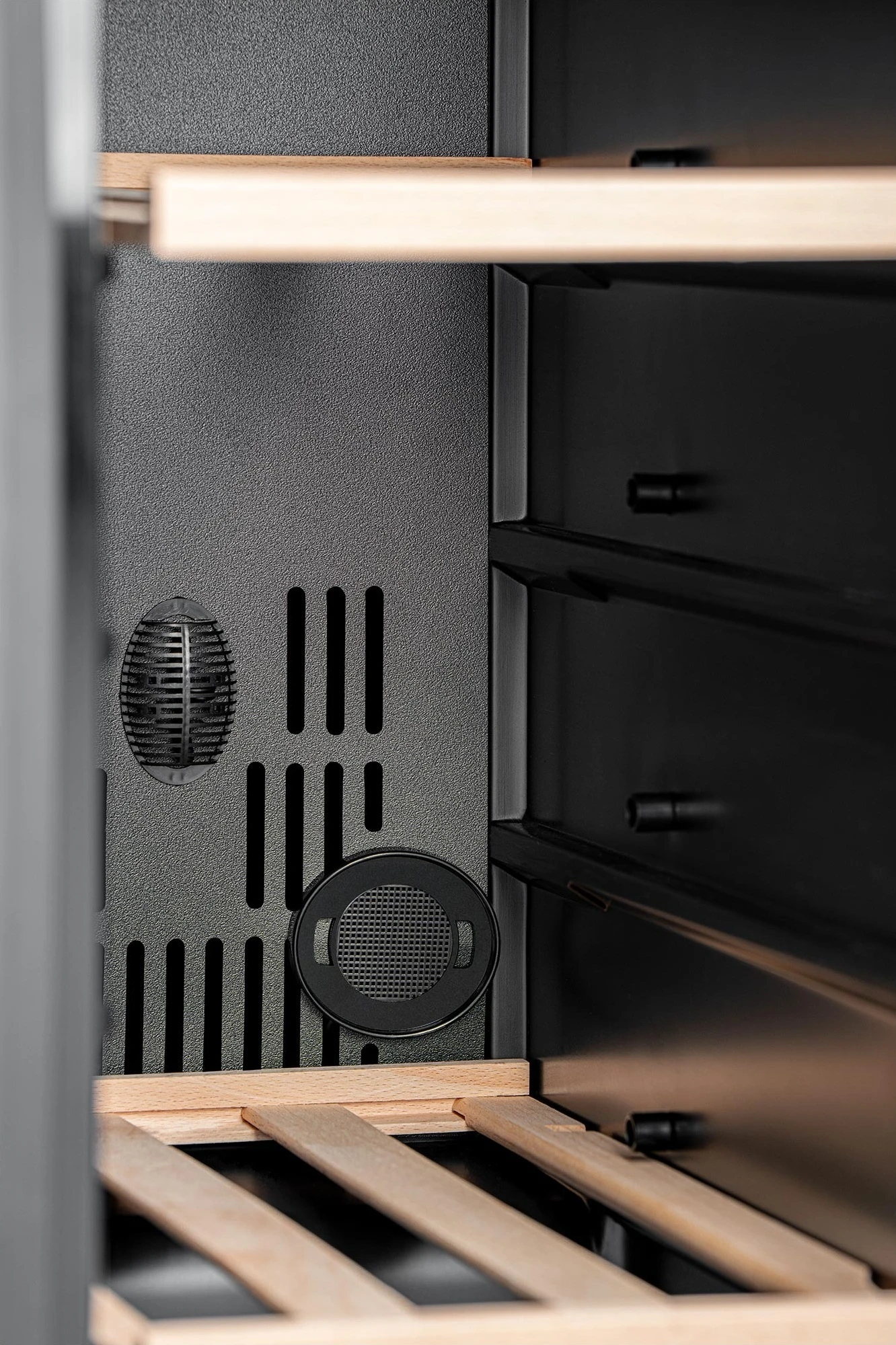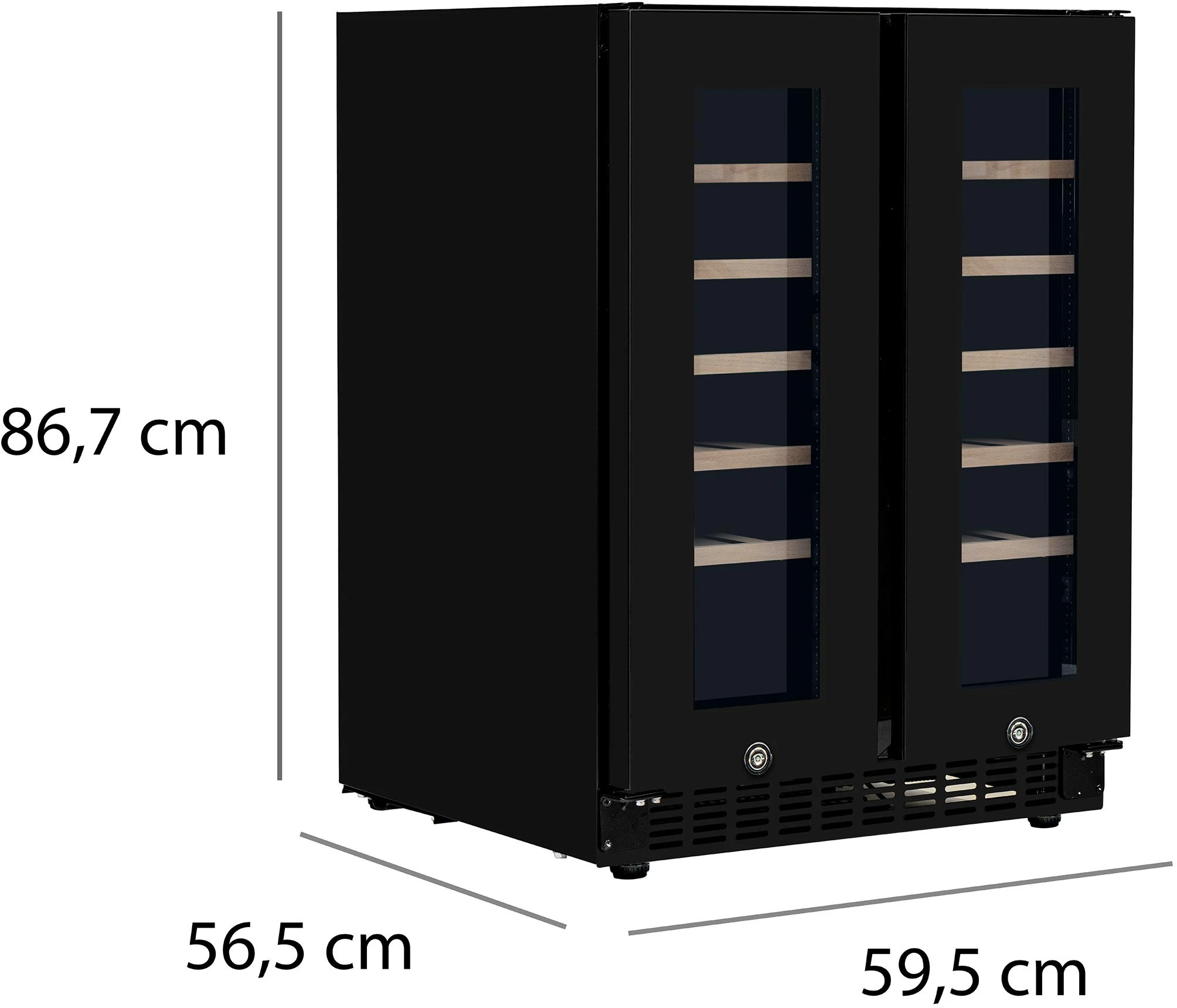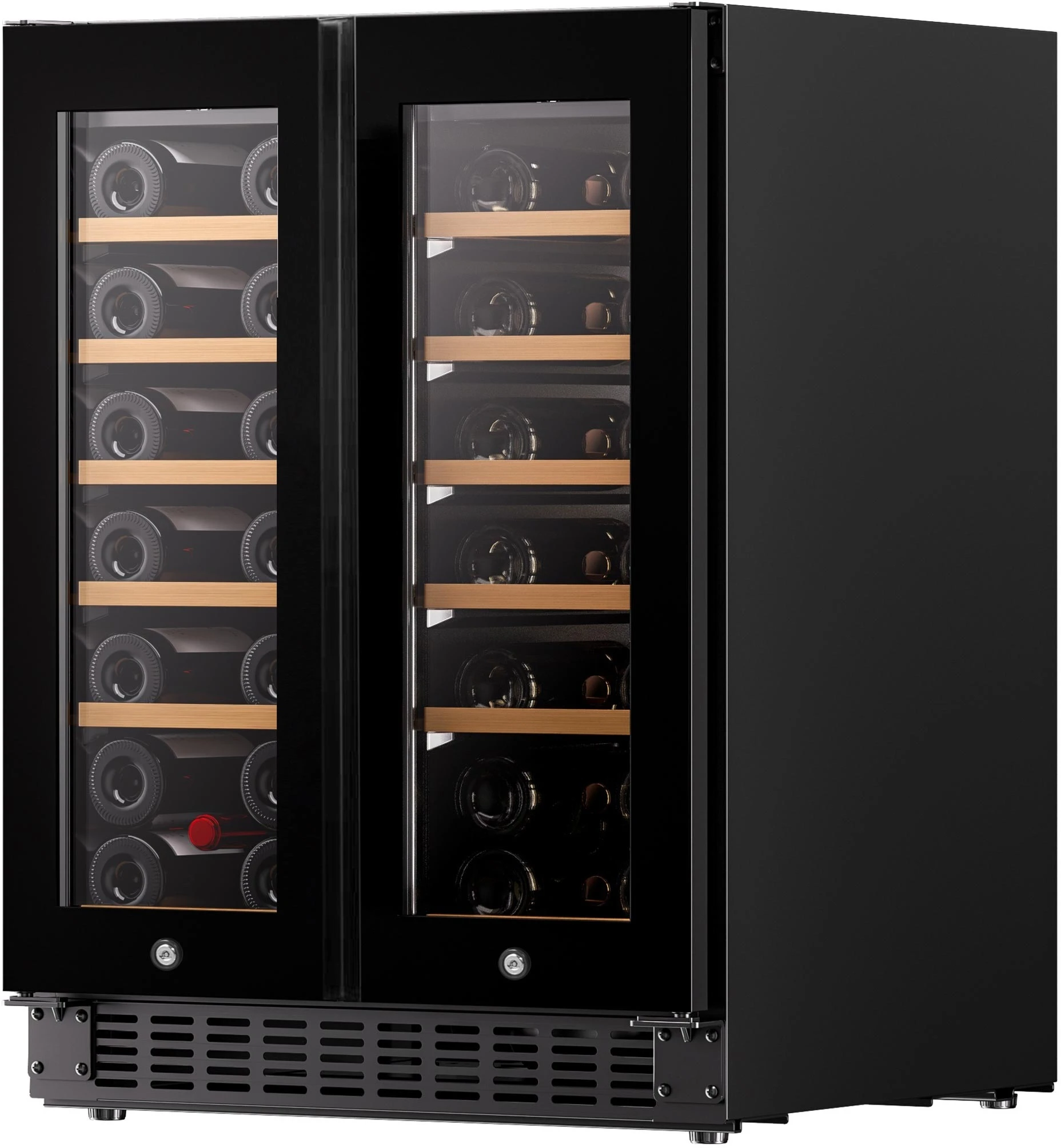 Philco PW40GDC — компактний двозонний винний холодильник на 40 пляшок (116 л) з дерев’яними полицями, сенсорним керуванням і діапазоном 5–20 °C в обох зонах. Чорний корпус, подвійне скло з УФ-фільтром, антивібраційний компресор, вугільний фільтр, WinterCare (працює від +5 °C) і контейнер для підтримки вологості. Ідеальний для квартири, невеликого ресторану чи офісу — висота лише 87 см дозволяє ставити під стільницю.