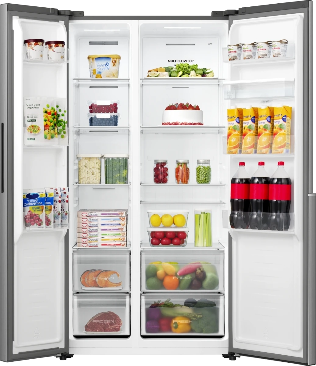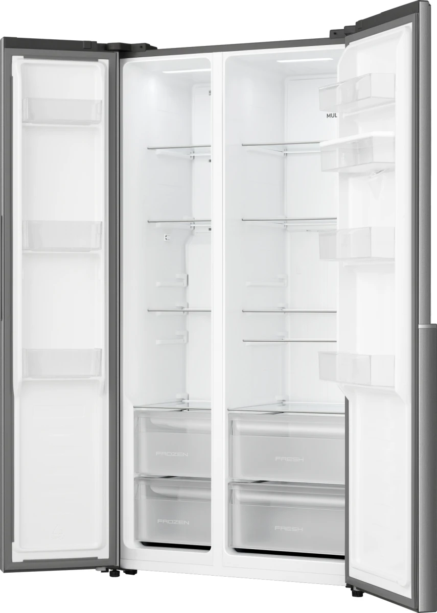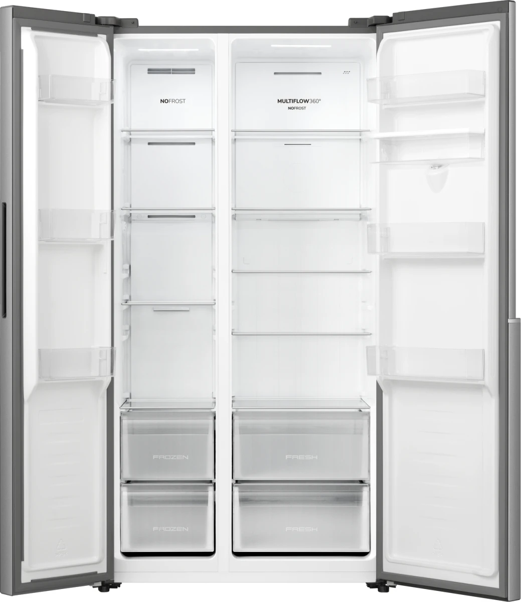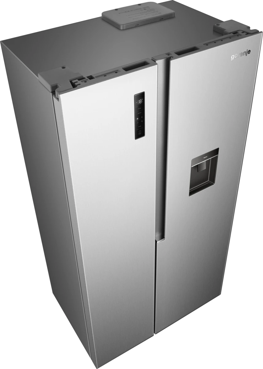Side-by-side холодильник Gorenje NRS917E41XWD у сірому виконанні поєднує місткість 541 л із продуманою організацією простору. Інверторний компресор і система NoFrost+ забезпечують стабільне охолодження без утворення інею. Диспенсер води та зовнішній LED-дисплей спрощують щоденну експлуатацію. MultiFlow підтримує рівномірну циркуляцію повітря на всіх рівнях.