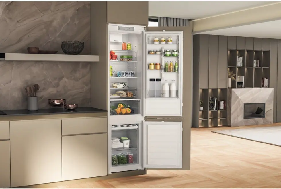 Встроенный дизайн Этот холодильник легко интегрируется в вашу кухню, поддерживая чистый и гармоничный вид.