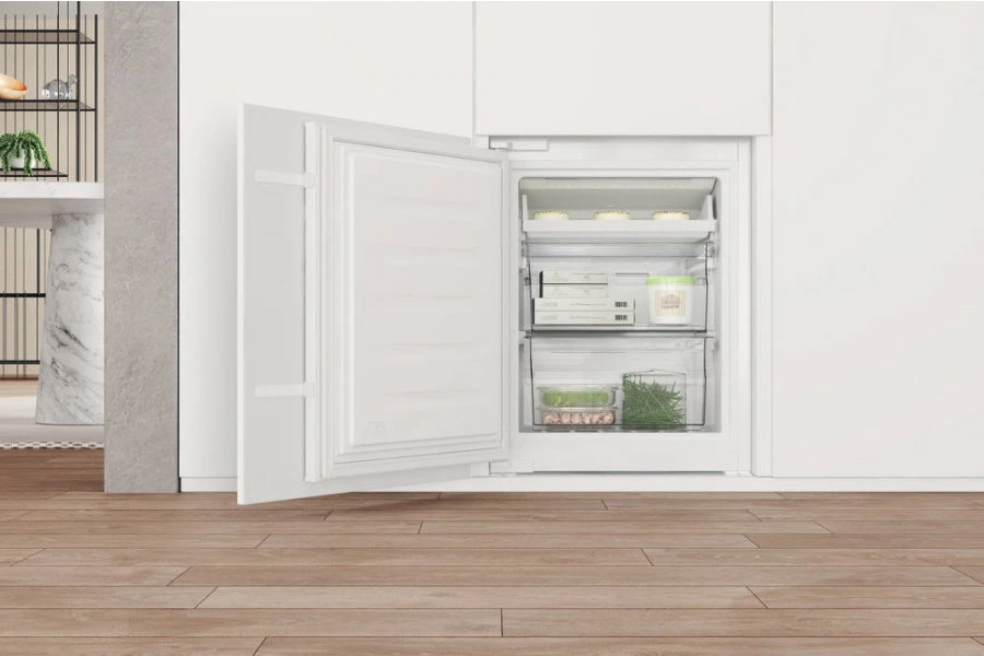 Холодильник з морозильною камерою Whirlpool WHC20 T352 є вбудовуваною моделлю зі слайдерним кріпленням дверей до меблевого фасаду. Функція швидкого охолодження гарантує тривалу свіжість продуктів завдяки прискореному відновленню температури після відкриття дверцят.