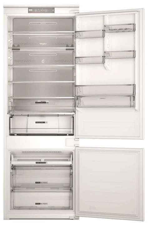 Цей вбудований холодильник Whirlpool - це високоякісний, функціональний і стильний прилад для кухні. Він має великі об'єми як холодильного, так і морозильного відділення, а також інноваційні технології, які сприяють ефективному та довготривалому зберіганню продуктів. Інверторний компресор допомагає знизити споживання електроенергії та забезпечує тиху роботу. Зона нульової температури та інші функції роблять цей холодильник ідеальним вибором для сучасної кухні.