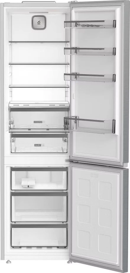 Холодильник Whirlpool WHK26362XP5E — це двокамерна модель із нижнім розташуванням морозильної камери та системою No Frost. Загальний корисний об’єм 316 літрів дозволяє зручно зберігати продукти для всієї родини. Інверторний компресор забезпечує стабільну роботу та низький рівень шуму 35 дБ. Нульова зона створює оптимальні умови для зберігання свіжих продуктів. Електронне керування з дисплеєм спрощує налаштування режимів.