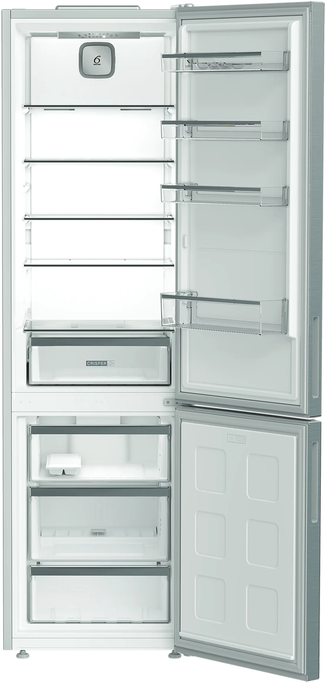 Холодильник Whirlpool WHK25404XP5E — двокамерна модель з нижнім розташуванням морозильної камери та системою No Frost. Загальний корисний об’єм 355 л дозволяє зручно зберігати продукти для великої родини. Інверторний компресор забезпечує стабільну роботу, низький рівень шуму та економне енергоспоживання класу A++. Нульова зона підтримує оптимальні умови для свіжих продуктів. Корпус з нержавіючої сталі надає сучасного вигляду кухні.