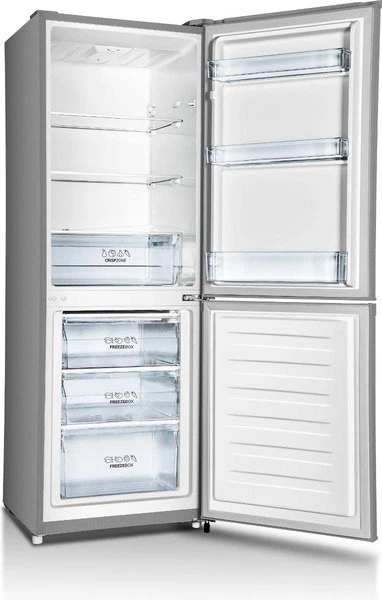Холодильник Gorenje з нижньою морозильною камерою має корисний об’єм 175 л: 122 л у холодильній камері та 53 л у морозильній. Розміри — 143 × 49,5 × 56,2 см, колір — сірий. Клас енергоефективності А+, механічне керування, кліматичний клас N-ST. Оснащений зоною свіжості, діодним освітленням, 3 скляними полицями та 3 шухлядами в морозильному відділенні. Рівень шуму — 39 дБ.