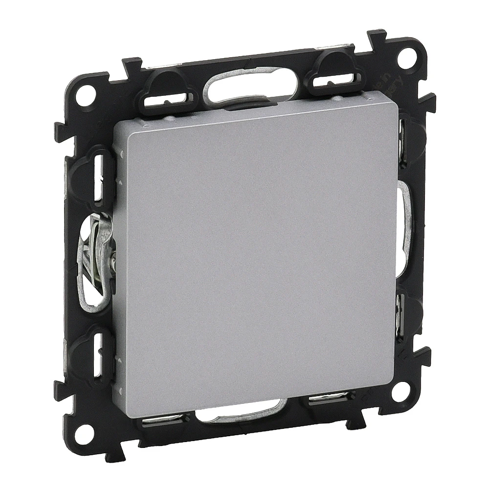 Заглушка Valena LIFE, алюміній 755182 постачається з супортом для монтажу на захватах або гвинтах, лицьовою панеллю Valena Life та прозорим екраном для захисту від пилу. Колір: алюміній. Відноситься до механізмів Valena In'Matic.