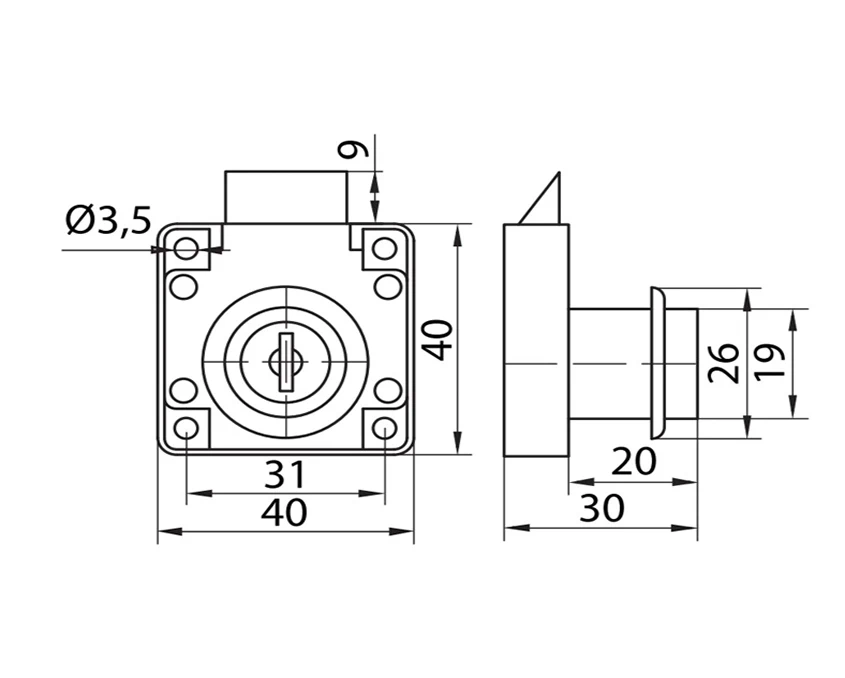 Замок предназначен для врезного монтажа в фасады из ДСП или МДФ толщиной до 22 мм. Применяется в шкафах, тумбах, полках, витринах и ящиках. Защёлка обеспечивает плотное закрытие створок, предотвращая их самопроизвольное открытие.