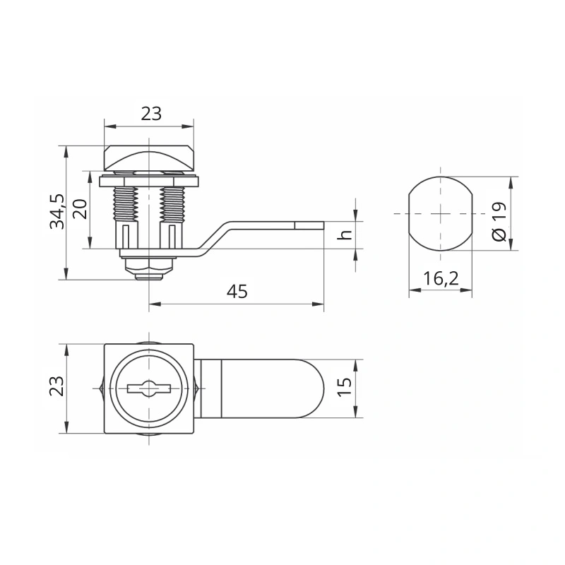 - Диаметр монтажного отверстия под корпус замка 19 мм