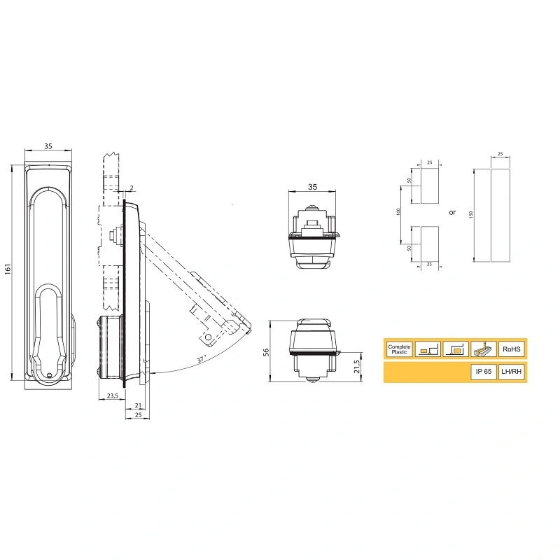 Совместим с металлическими шкафами, оснащёнными системой тяг для многоточечного закрывания. Может использоваться в телеком-оборудовании, промышленных шкафах, распределительных модулях и серверных системах.