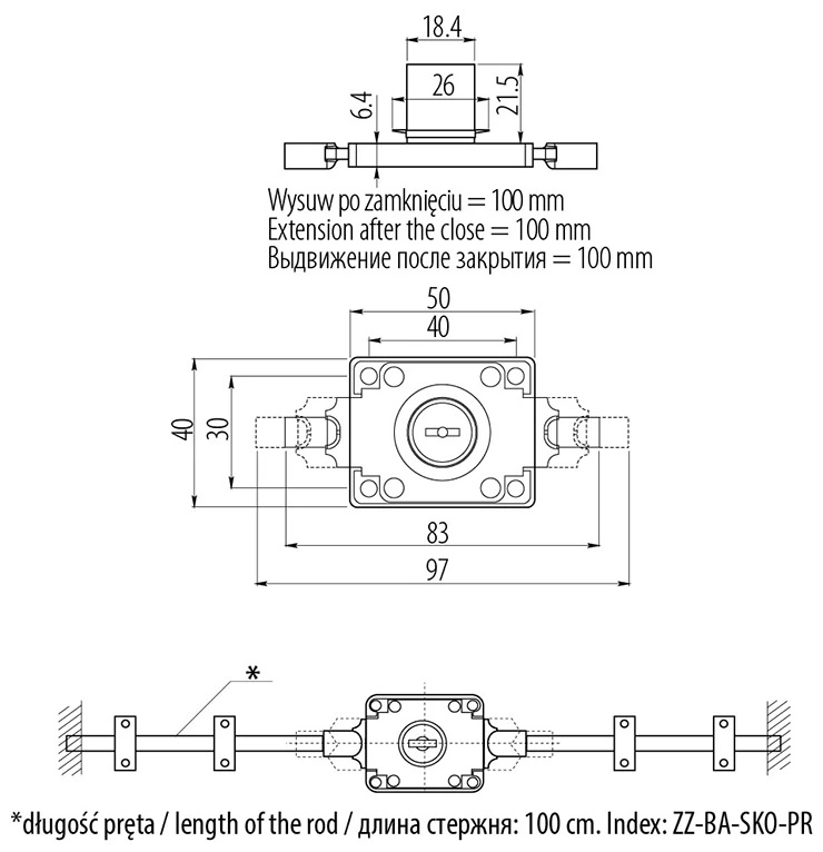 - Длина язычка/ригеля 100 мм