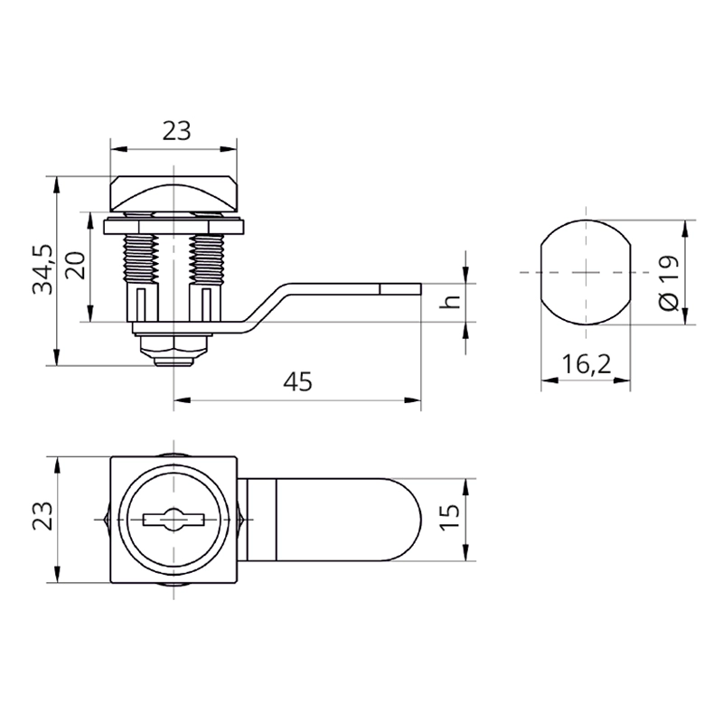 - Диаметр монтажного отверстия под корпус замка 23 мм