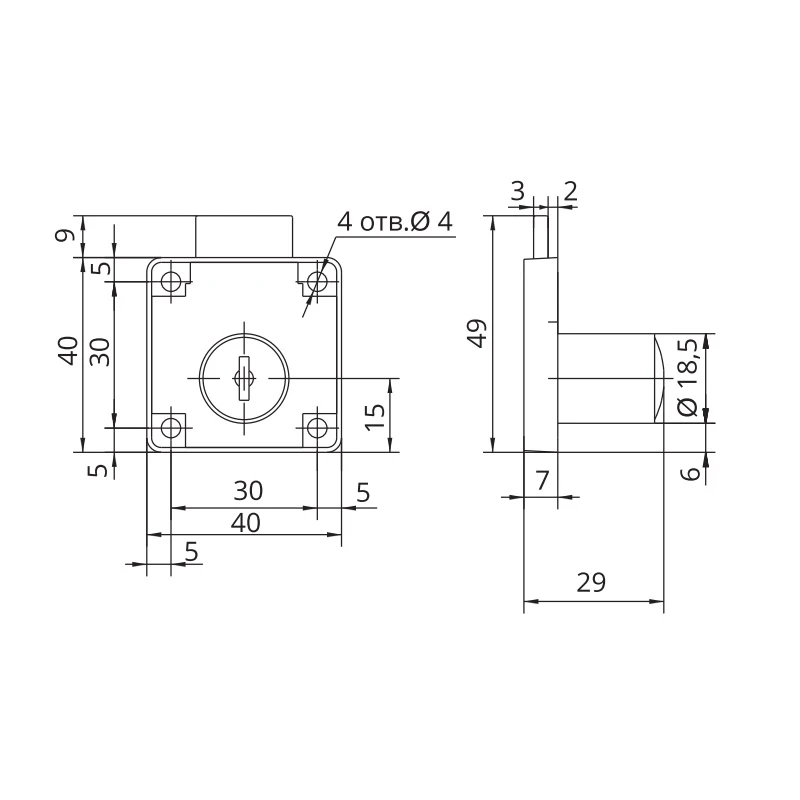 Замок имеет классическую квадратную форму и удобный ключевой механизм. Цинковое покрытие предотвращает появление ржавчины и повышает износостойкость изделия. Механизм может работать с поворотом ключа на 90° или 180°, что делает его универсальным для различных мебельных систем.