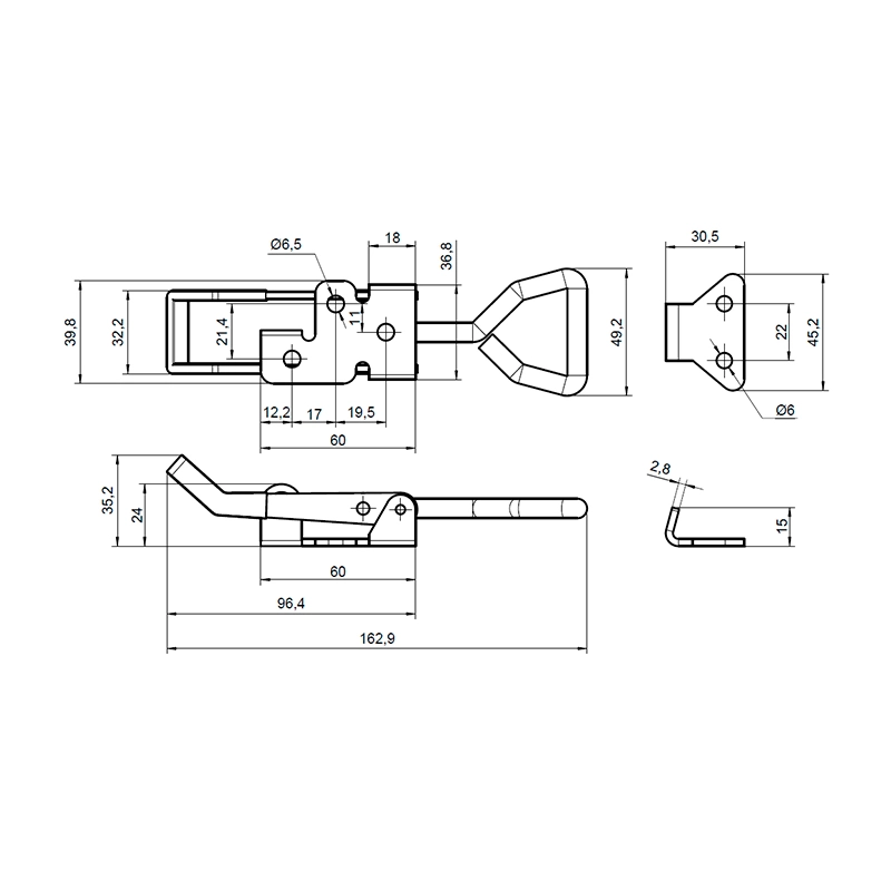 - Габариты лицевой части замка 30,5 х 45,2 мм