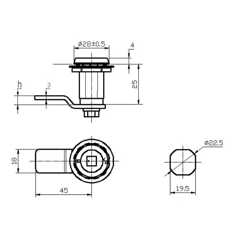 - Диаметр монтажного отверстия под корпус замка 22,5 мм