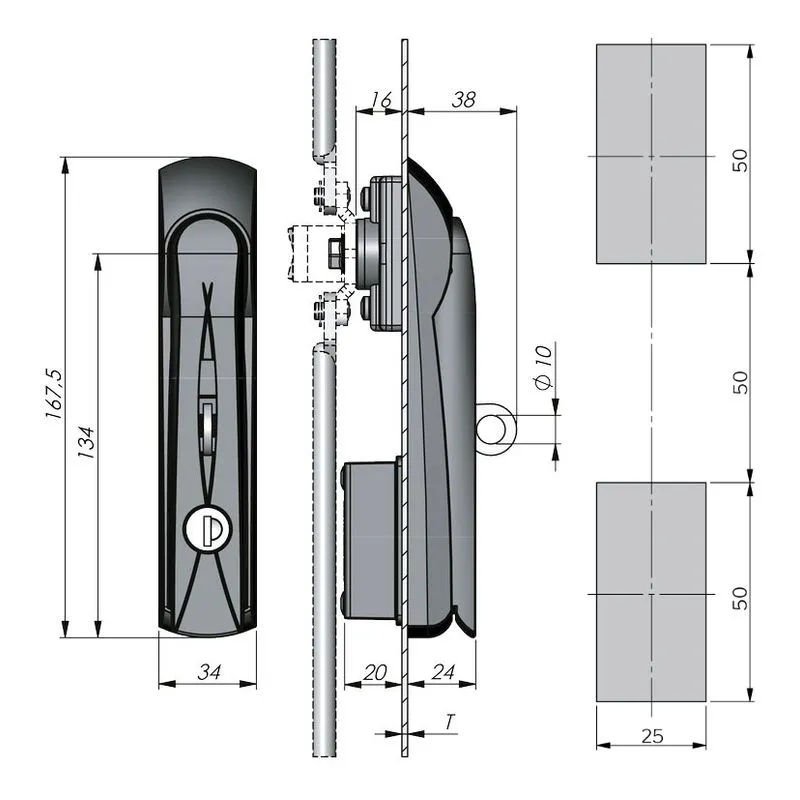 Замок-ручка подходит для металлических корпусов телекоммуникационных и серверных шкафов. Совместим с уплотнителями, петлями, рамками и другими элементами корпусной фурнитуры. Универсальная конструкция позволяет использовать его в системах разных производителей.
