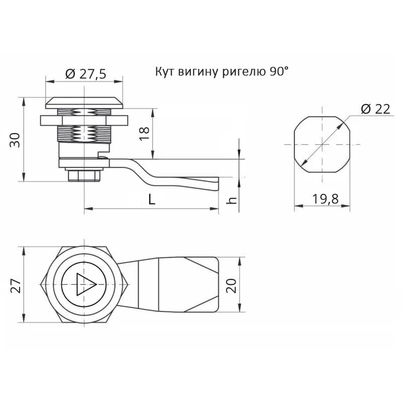 Замок треугольник для электрощитов h=8 мм, изгиб 90° — это практичное и долговечное решение для технических шкафов, обеспечивающее надёжное запирание и удобство эксплуатации.