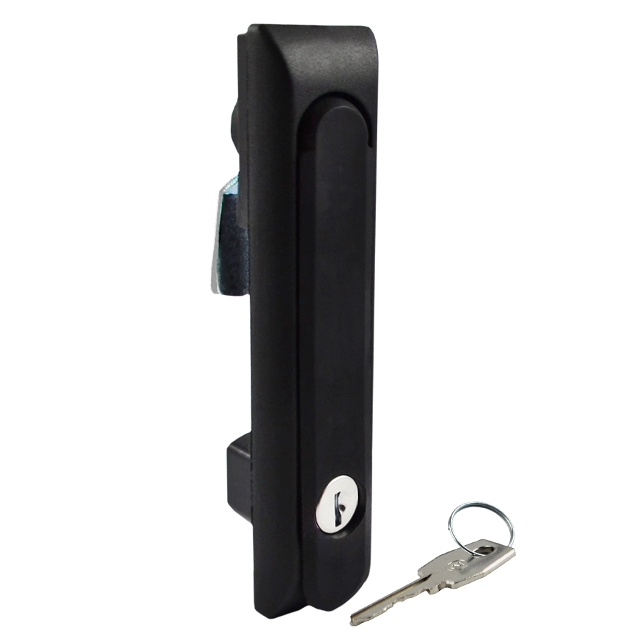 Применяется в электротехнических панелях, телекоммуникационных и серверных шкафах, а также в промышленных корпусах для защиты оборудования от несанкционированного доступа. Подходит для мастерских, складов или офисов с металлическими конструкциями: например, для блокировки панелей с кабелями, инструментами или электроникой. Решает задачу быстрого запирания в условиях, где шкаф имеет одну дверь, а многоточечная система не нужна, предотвращая пыль и случайное открытие.