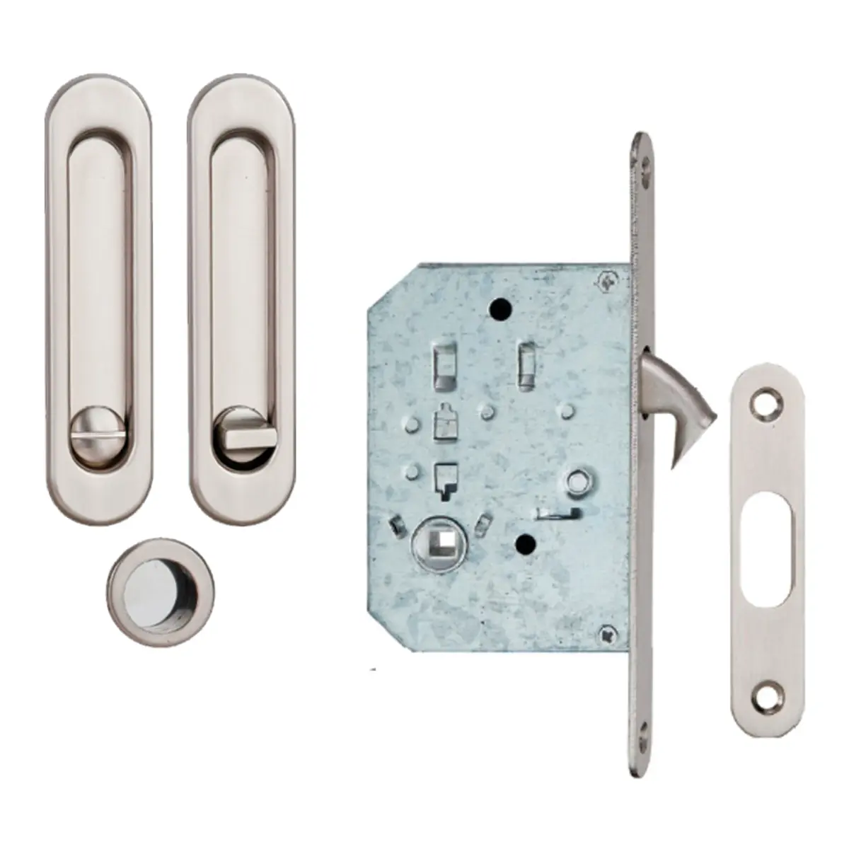 Замок с ручками SIBA S223 WC для раздвижных дверей Никель матовый SN