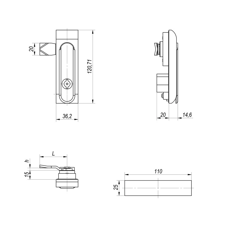 Основное о модели Замок с откидной рукояткой для металлических шкафов Черный