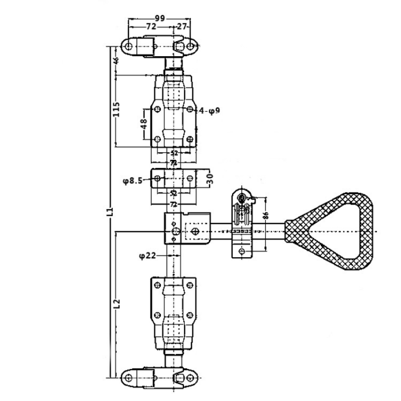 Модель совместима с трубами или стержнями диаметром 22 мм и может использоваться с петлями, фиксаторами, ручками и другими элементами запорных систем полуприцепов. Рекомендуется применять оцинкованные или нержавеющие крепёжные детали для повышения устойчивости к коррозии.