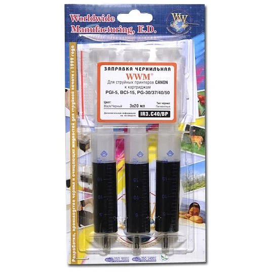 Заправочний набір WWM для Canon PG-40/PG-37 (3 x 20мл) 3шт x 20мл Black пігментне (IR3.C40/BP)