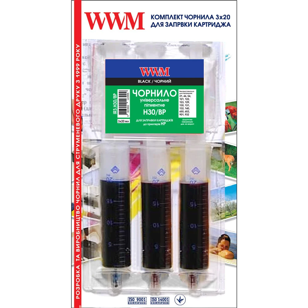 Заправочний набір WWM для HP №21/121/122 (3 x 20мл) 3шт x 20мл Black пігментне (IR3.H30/BP)