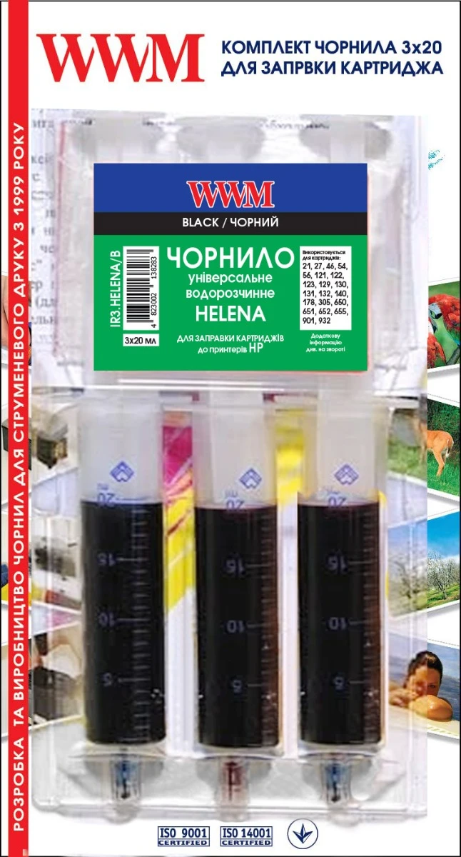 Заправочний набір WWM HELENA для HP (3 x 20мл) 3шт x 20мл Black водорозчинне (IR3.HELENA/B)