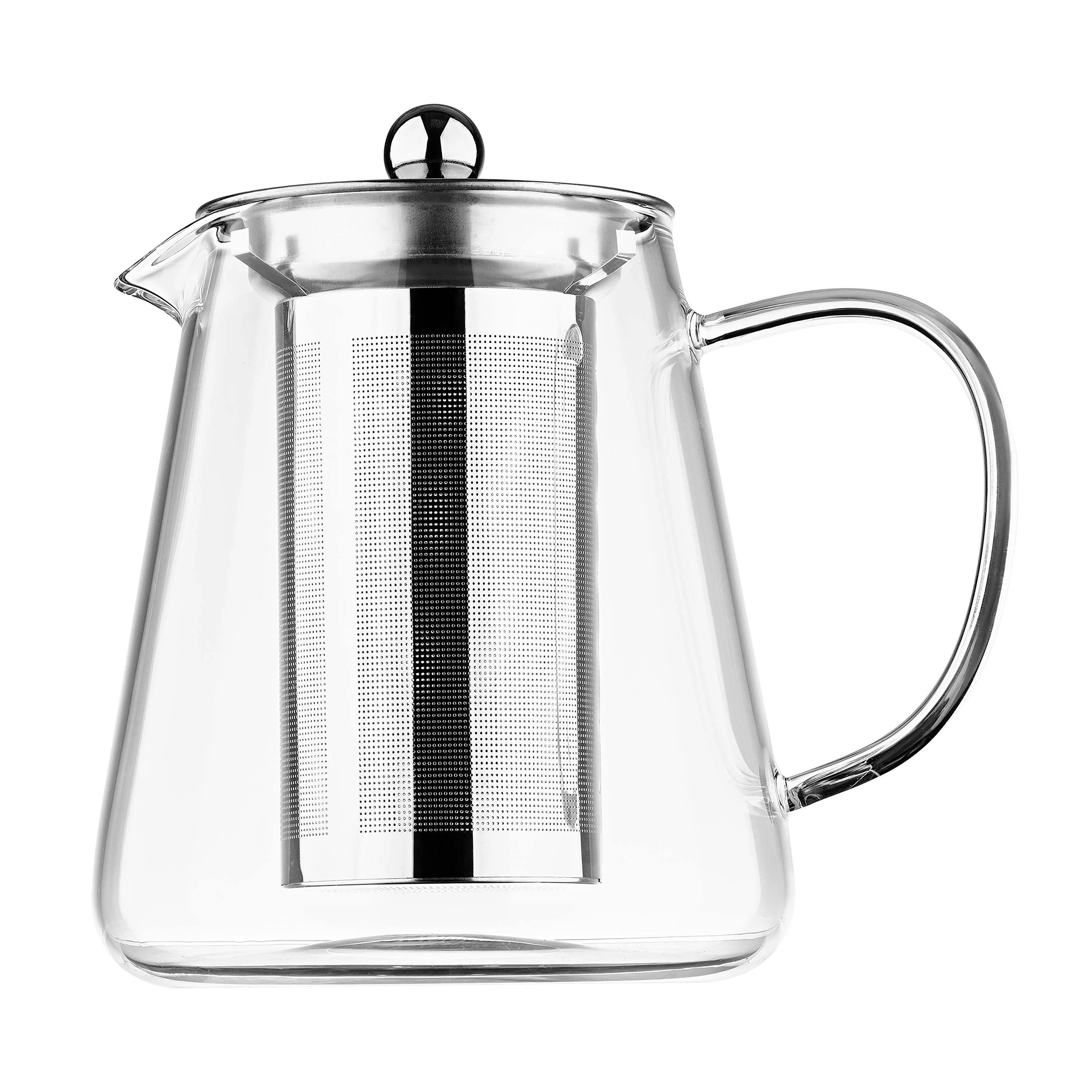 Модель виготовлено з екологічного матеріалу – боросилікатного скла, яке не вбирає запахи, тому смак чаю завжди залишатиметься незмінним. Матеріал вирізняється міцністю і стійкістю до перепадів температури, гарантуючи тривалий термін слугування і безпечне використання виробу. Зручне ситечко з нержавіючої сталі надійно утримує всередині чайне листя. Об’єм моделі становить 950 мл, що дає змогу приготувати до 5 чашок чаю одночасно. Це ліпший вибір для сімейних обідів, вечірок з друзями або для використання в офісі. Заварник згодиться для різних видів плит (газових, електричних, склокерамічних, галогенних), його можна підігрівати на помірному вогні та мити в посудомийній машині.