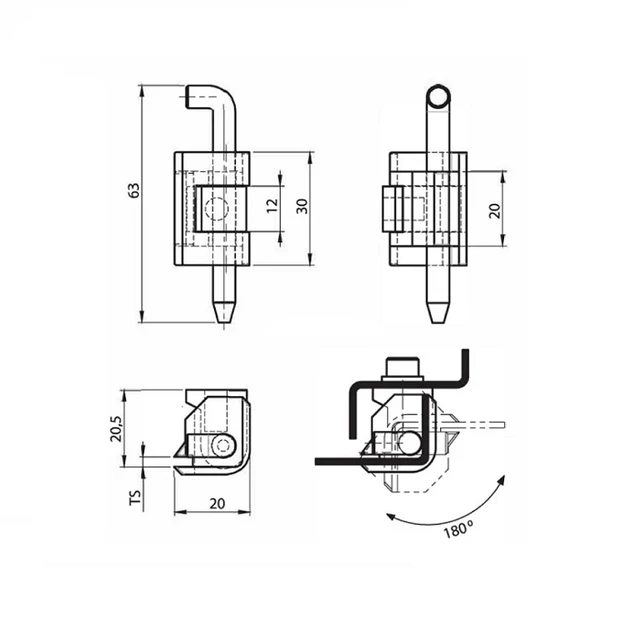 Петля для металлического шкафа угловая RZ относится к электрощитовой фурнитуре. Рекомендуется для электрошкафов, рассчитанный на толщину металла 1,5-2 мм.