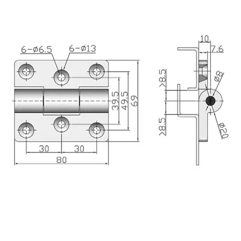 Петля накладная RZ H6980.SS.0.1, 69х80 мм толстая Металлик