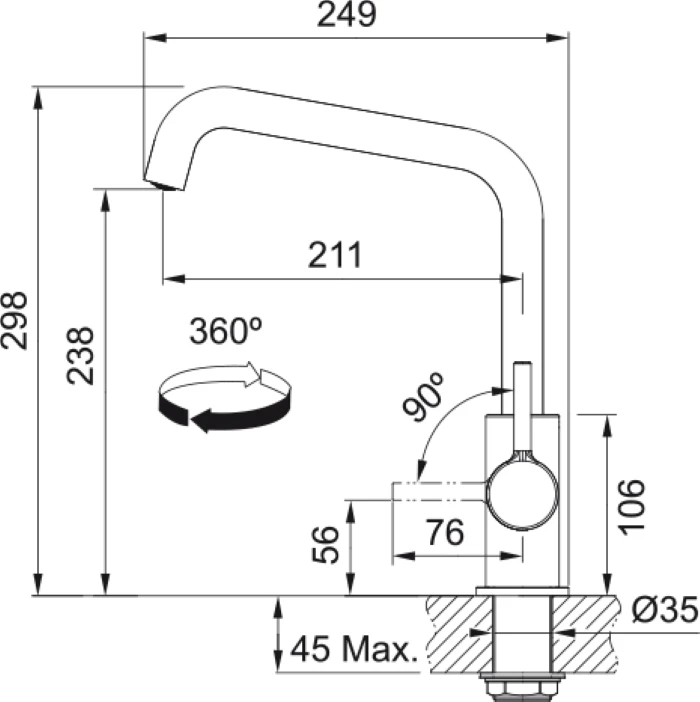 Змішувач для кухні Franke Lina U, довж.виливу - 211мм, поворотний, 1важіль, хром