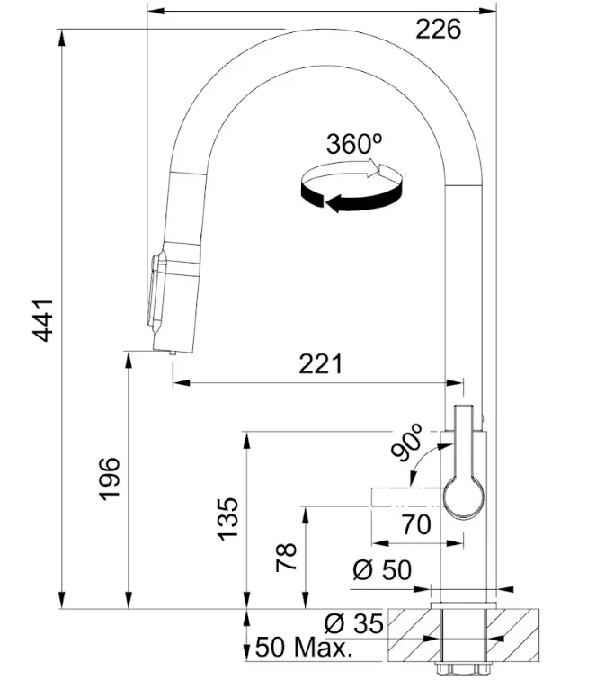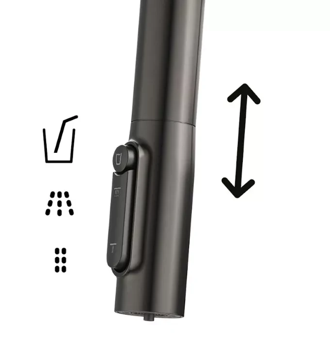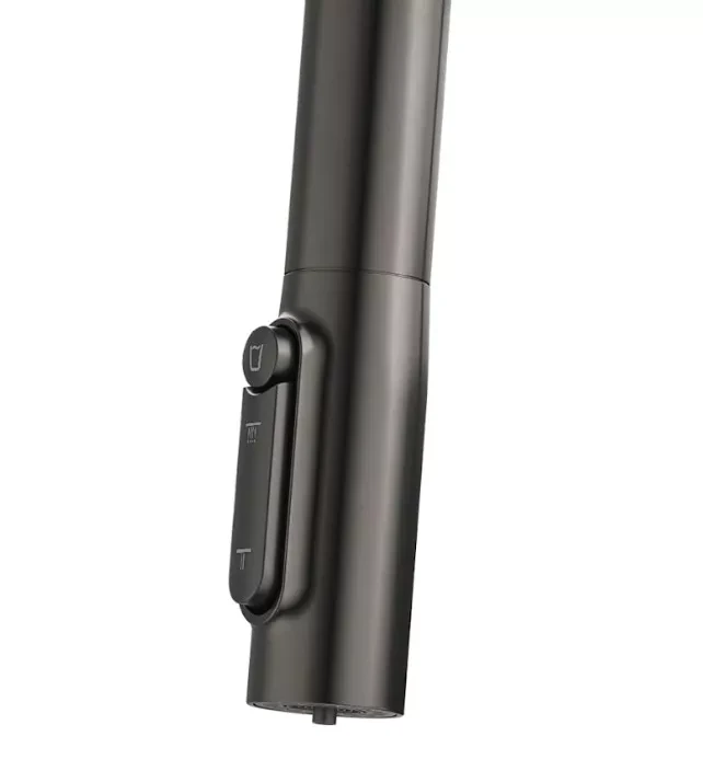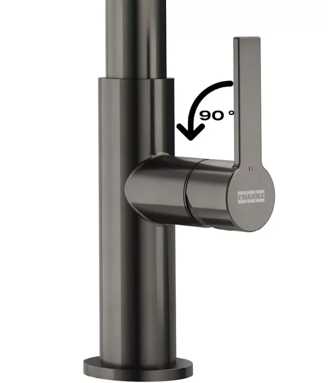 Franke Maris Slim J Clear Water 120.0736.603 — кухонний змішувач із латуні в кольорі антрацит із витяжним виливом J-подібної форми і вбудованою системою подачі фільтрованої води 1+1. Довжина виливу 221 мм, кут повороту 360°, керування важелем збоку. Витяжний вилив із душем на нейлоновому шлангу і роздільна подача фільтрованої та звичайної води — два функціональні режими в одному кранику без додаткового змішувача на мийці. Картридж 35 мм із еко-режимом знижує витрату води при щоденному використанні.
