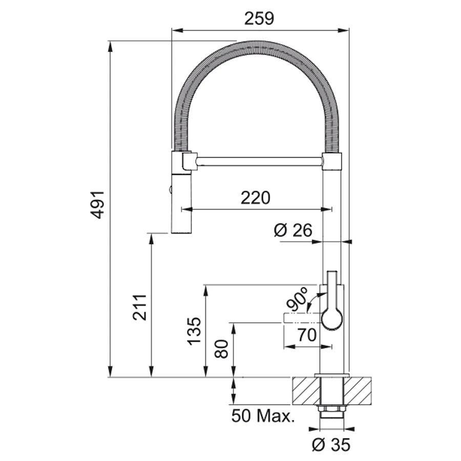- Высота излива, мм 211