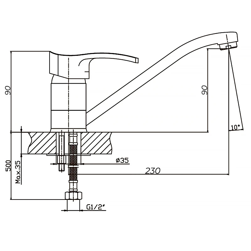 - Высота смесителя 10-15