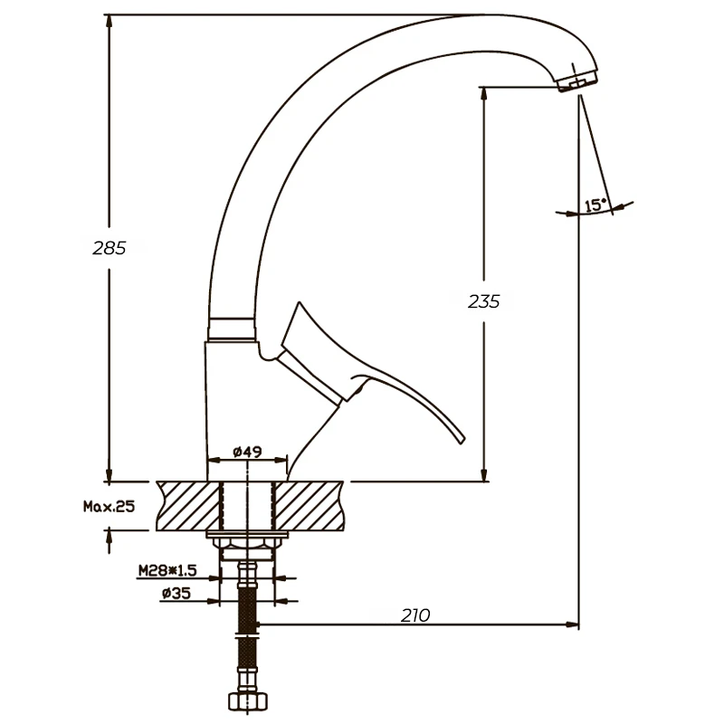 - Высота смесителя 26-30