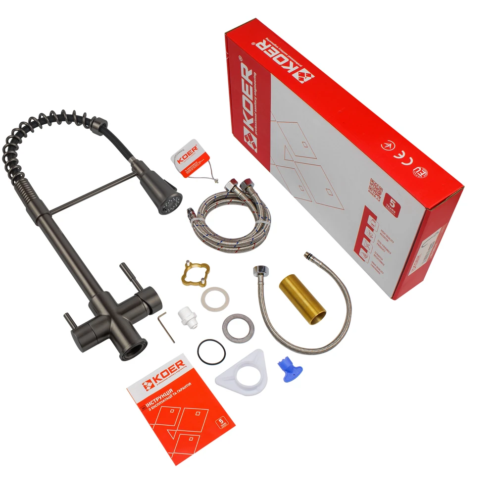 Змішувач для кухні Koer KB-72025-07 з виходом для питної води (вилив - пружина) (KR5016)