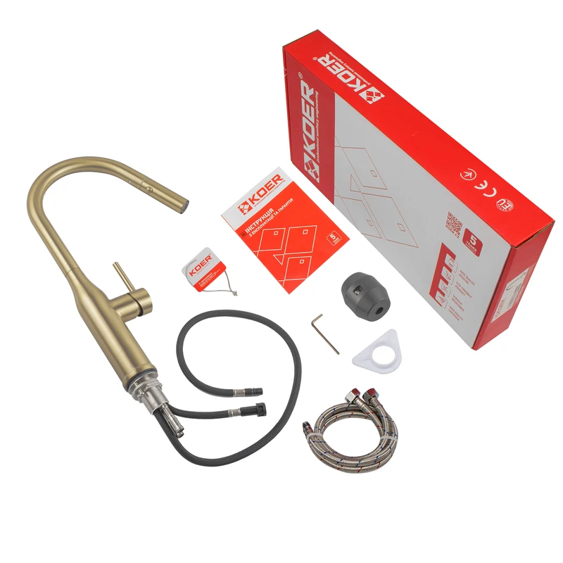 Змішувач для кухні Koer KI-70004-12 з висувним виливом (нерж. сталь) (KR5004)