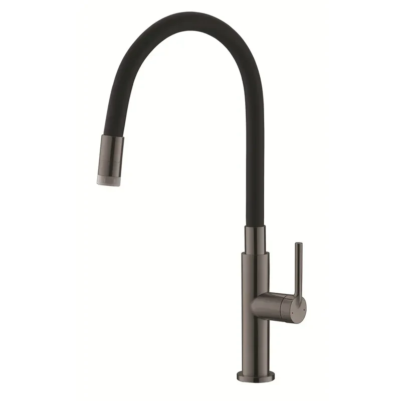 Змішувач для кухні Koer KI-70032-07 з нерж. сталі SUS304 (Колір графіт+силіконовий вилив чорний) (KR