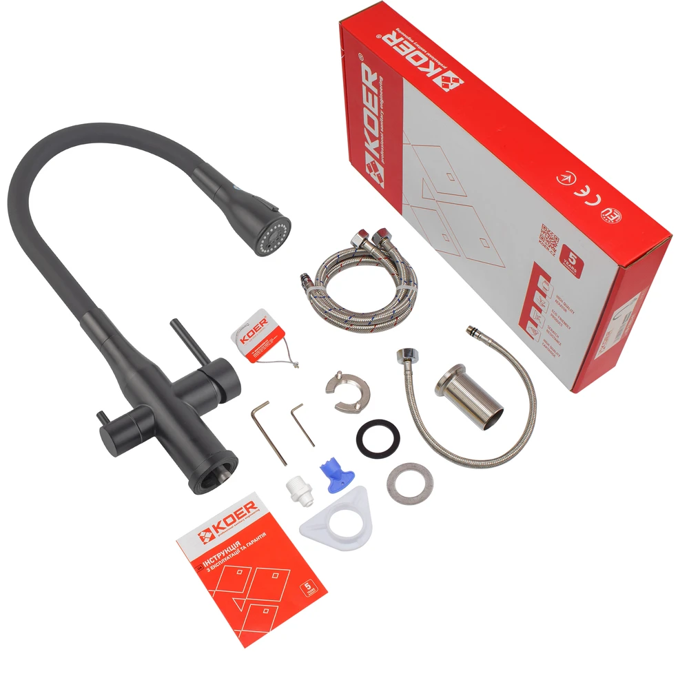 Змішувач для кухні Koer KI-72024-05 з виходом для питної води (нерж. сталь) (KR5012)