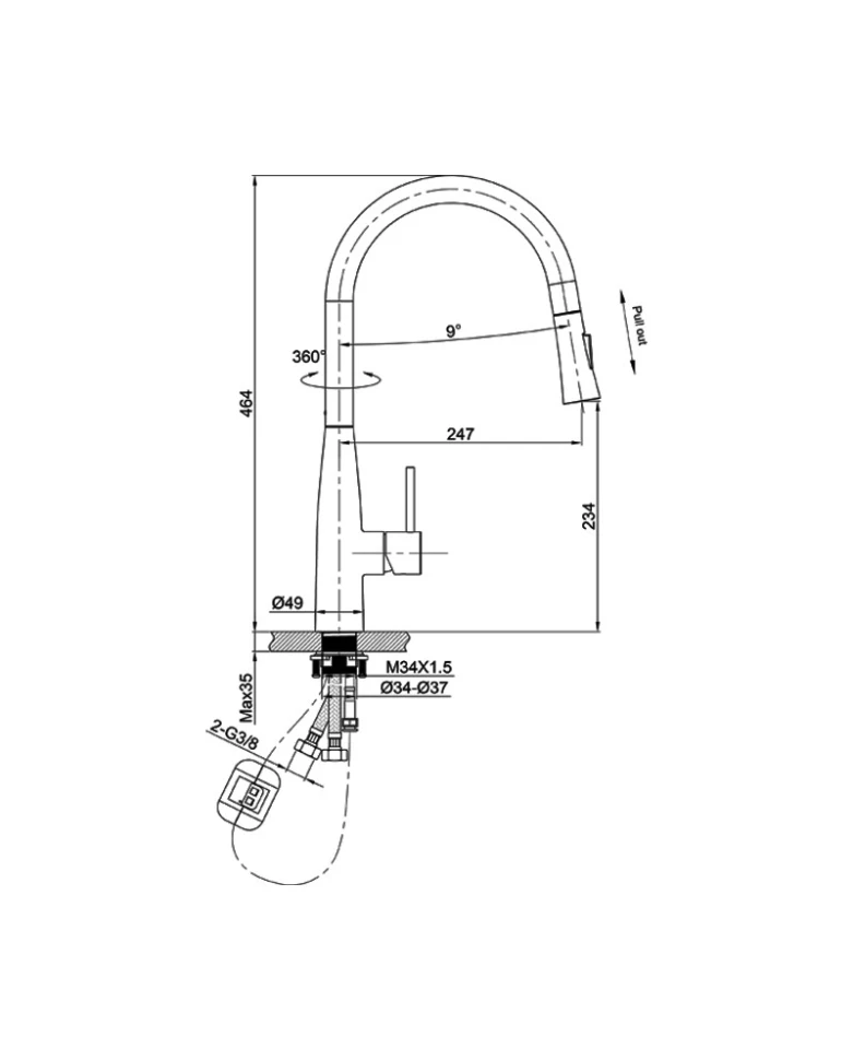 змішувач для кухні Lavita Orion з висувним виливом, чорний матовий (5900378346128)