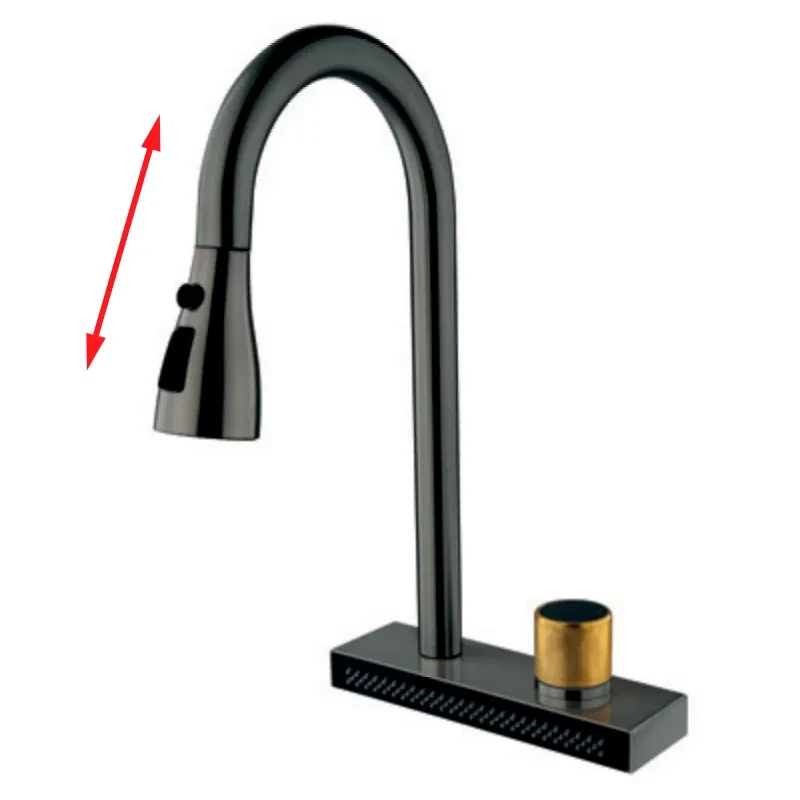 Змішувач для кухні Mixxus FOL-014 Graphite з висувною лійкою та функ."водоспад" з нерж.сталі (колір