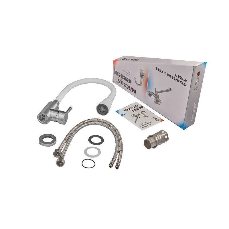 Змішувач для кухні MIXXUS SUS-011-T REFL.WHITE з силіконовим виливом з нерж. сталі SUS304, вилив біл
