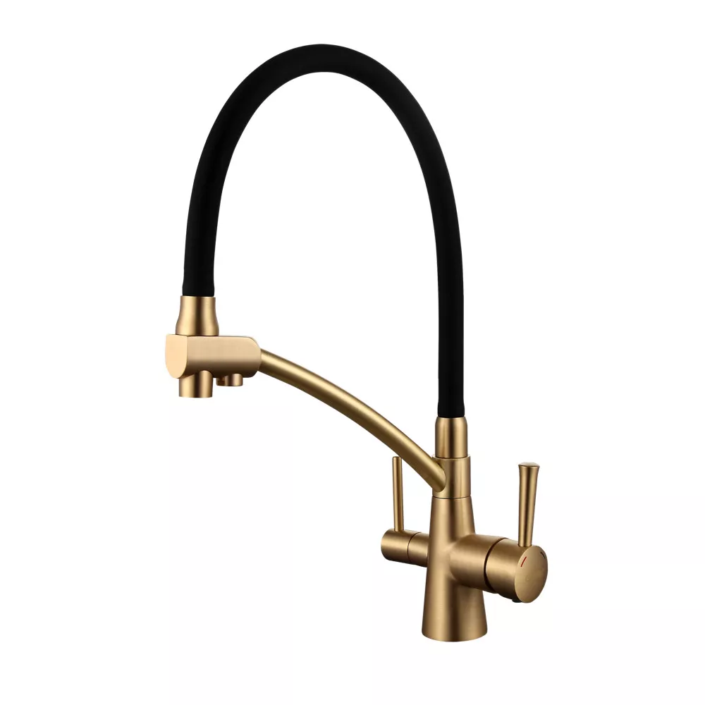 Змішувач для кухні на дві води GAPPO G4398-1 з гнучким виливом, чорний/бронза