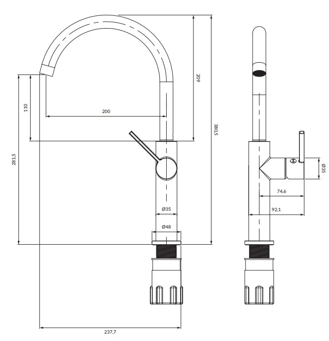 - Тип смесителя на один отвір
