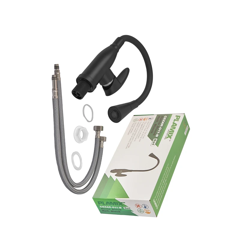 Змішувач для кухні PLAMIX CEZAR-011-B SET MATTE BLACK REFL.BLACK з силіконовим виливом, з підведення