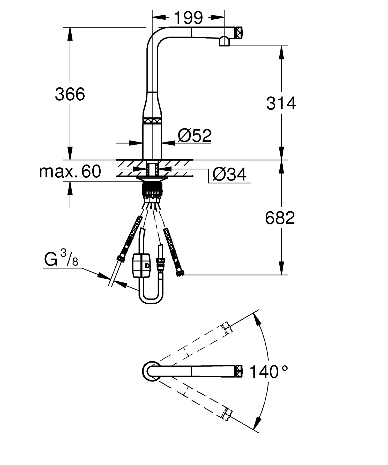 Змішувач для кухні з висувним виливом Grohe Essence SmartControl (31615000)