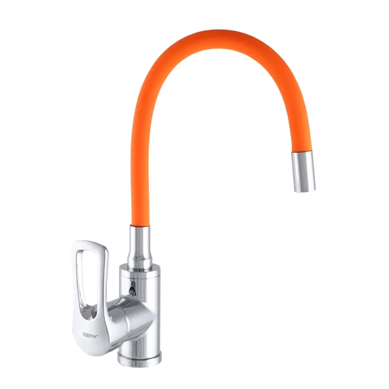 Змішувач для кухні Zerix SAR 181 з помаранчевим силіконовим виливом (ZX2674)