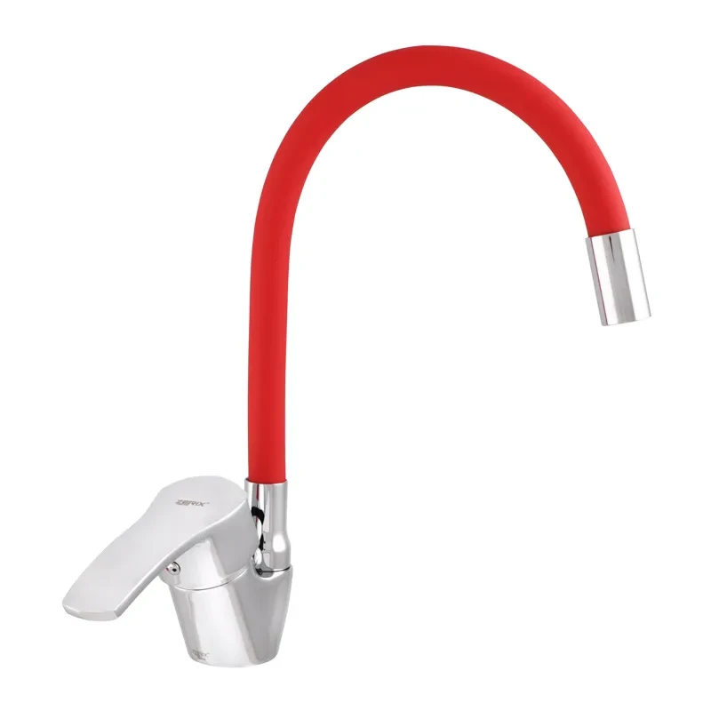 Змішувач для кухні ZERIX YUB 279 с червоним гнучким виливом (ZX0441)