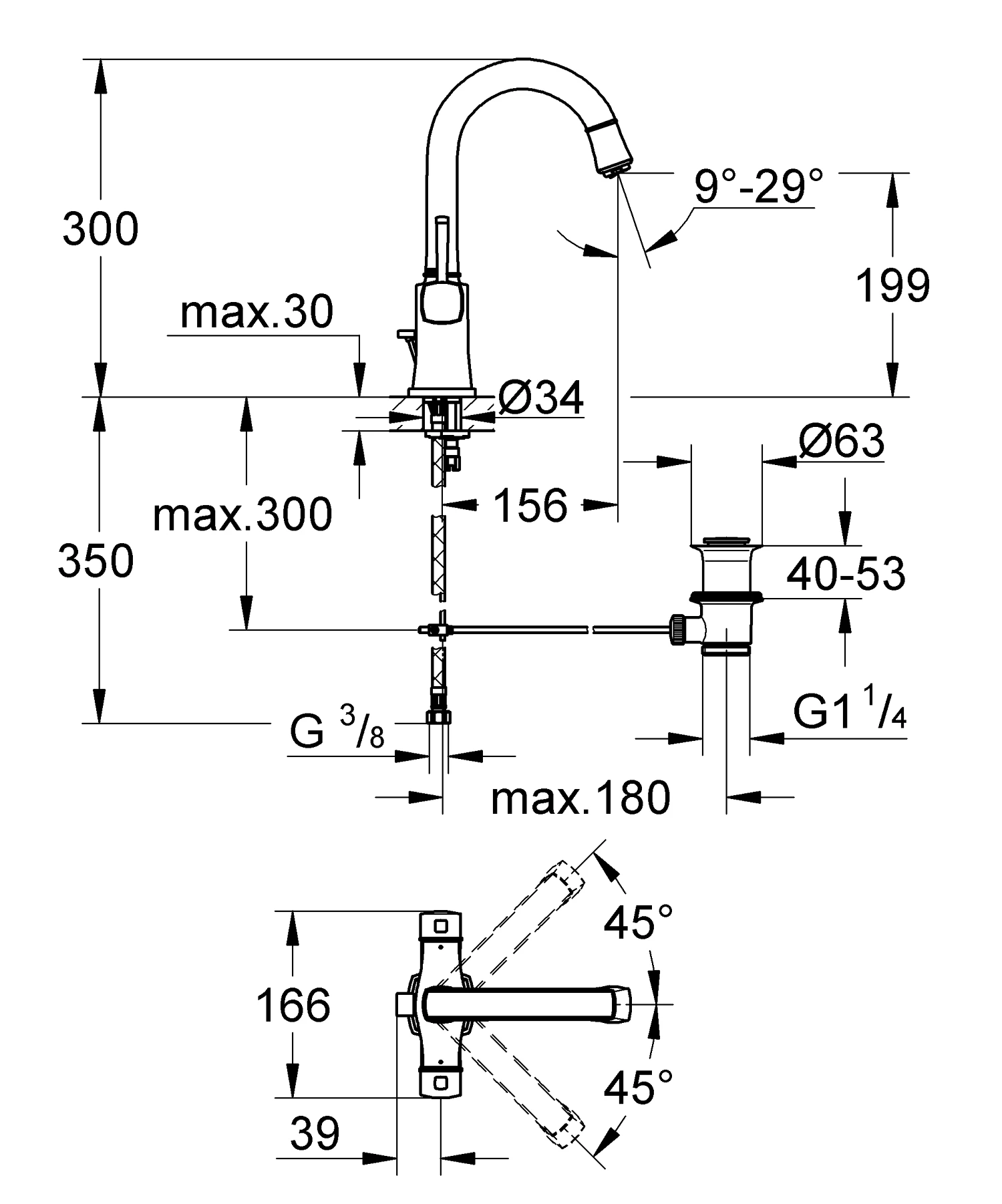 - Высота смесителя 26-30
